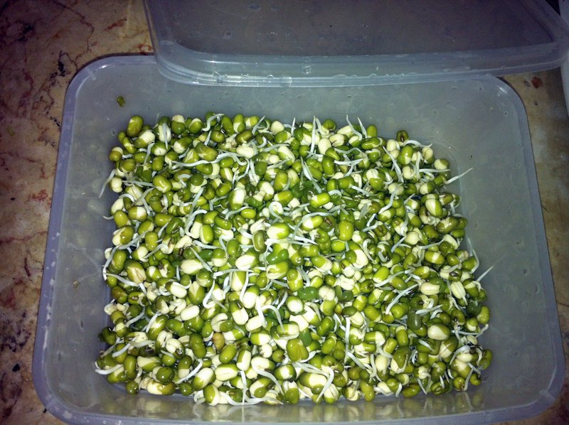 המאש מתחיל לנבוט אט אט, אנחנו מחכים שאורך הנבט יהיה כ -1 ס"מ. כשזה קורה, מפרידים את המאש מהמסננת ומניחים אותו בתוך קופסא בתוך המקרר. לפעמים המאש ממשיך לנבוט גם בתוך המקרר…אז לא להבהל….:)